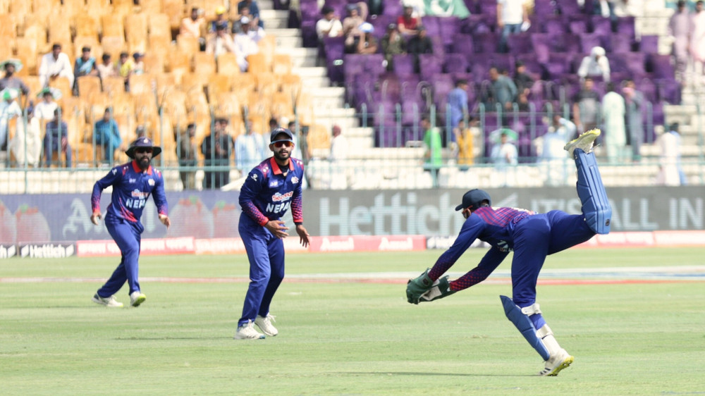 तर आरिफका भाई विकेटकिपर आसिफ शेखले उत्कृष्ट डाइभिङ क्याच लिएपछि करण केसीले जमानलाई १४ रनमा आउट गरेका थिए । गुल्शन झाले डिप स्क्वायरमा फितलो फिल्डिङ गरेपछि बाबर आजमले आफुले सामना गरेको पहिलो बलमै चौका प्रहार गरेका थिए । तर अर्को ओभरको पहिलो बलमै रोहितले मिड अफबाट सिधा थ्रोमा इमामलाई ५ रनमा रन आउट गरेका थिए ।